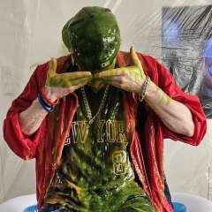 Mr Slime Guy got dunked by Gregster in a huge slime dunk tank